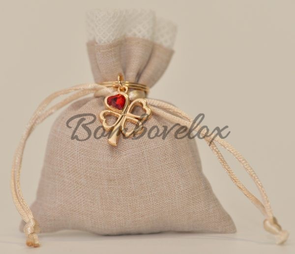 Portachiavi Quadrifoglio oro Claraluna cuore rosso